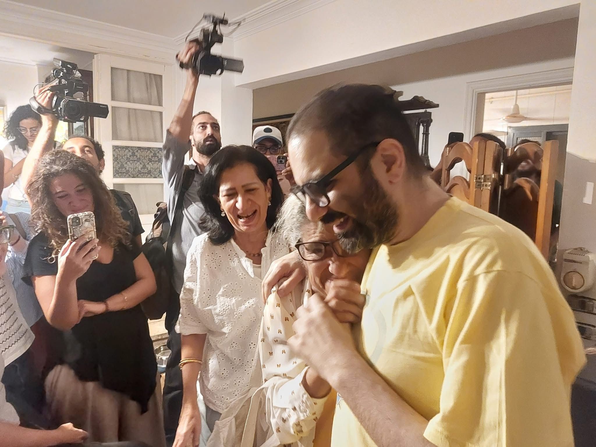 ظهر الناشط السياسي علاء عبد الفتاح مع أسرته بعد الإفراج عنه بعفو رئاسي من الرئيس عبد الفتاح السيسي، أمس الاثنين، ضمن 6 أشخاص شملهم القرار.