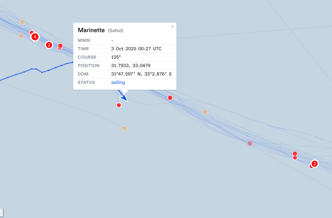 وفي أحدث بيانات، أشار منظمّو الأسطول إلى أن سفينة “مارينيت” بلغت مساء الخميس مسافة حوالي 80 ميلاً بحريًا من غزة، أي نحو 10 أميال من نقطة اعتراض إسرائيل لقوارب الأسطول الرئيسية.