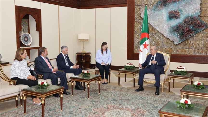 وقالت الرئاسة الجزائرية، في بيان، إن اللقاء جرى بحضور وزير الداخلية والنقل الجزائري سعيد سعيود، في إطار زيارة عمل رسمية يقوم بها الوزير الإسباني إلى الجزائر.