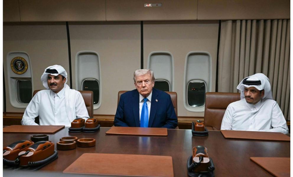 ترامب يشيد بأمير قطر خلال لقاءه داخل طائرة الرئاسة الأميركية