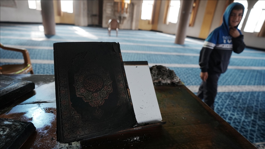 وبحسب مراسل وكالة أسوشيتد برس، فقد رُصد احتراق ثلاث نسخ من المصحف الشريف وبعض السجاد، إلى جانب كتابة عبارات تحمل طابعًا تحريضيًا على أحد جدران المسجد.
