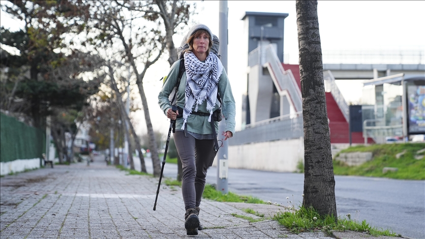 ناشطة بريطانية تقطع 6 أشهر سيرًا من المملكة المتحدة إلى إسطنبول لجمع التبرعات لفلسطين