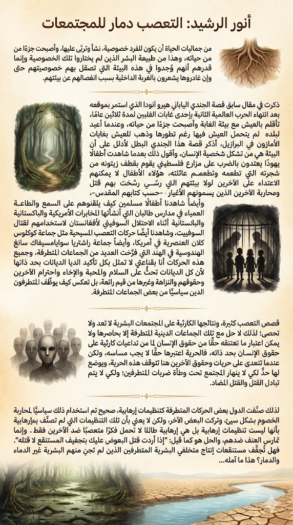 قصص التعصب كثيرة، ونتائجها الكارثية على المجتمعات البشرية لا تعد ولا تحصى؛ لذلك لا حل مع تلك الجماعات الدينية المتطرفة إلا بحاصرها ولا يمكن اعتبار ما تعتنقه حقًّا من حقوق الإنسان لما لها من تداعيات كارثية على حقوق الإنسان بحد ذاته،