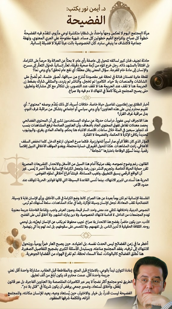 • الطريق نحو مجتمع أكثر نضجاً لا يمر عبر الكاميرات المتلصصة ولا العناوين الفاجرة، بل عبر قانون يُفعَّل، وأخلاق تُستعاد، وضمير جمعي يرفض أن يكون شريكاً في “قتل بلا دم”.