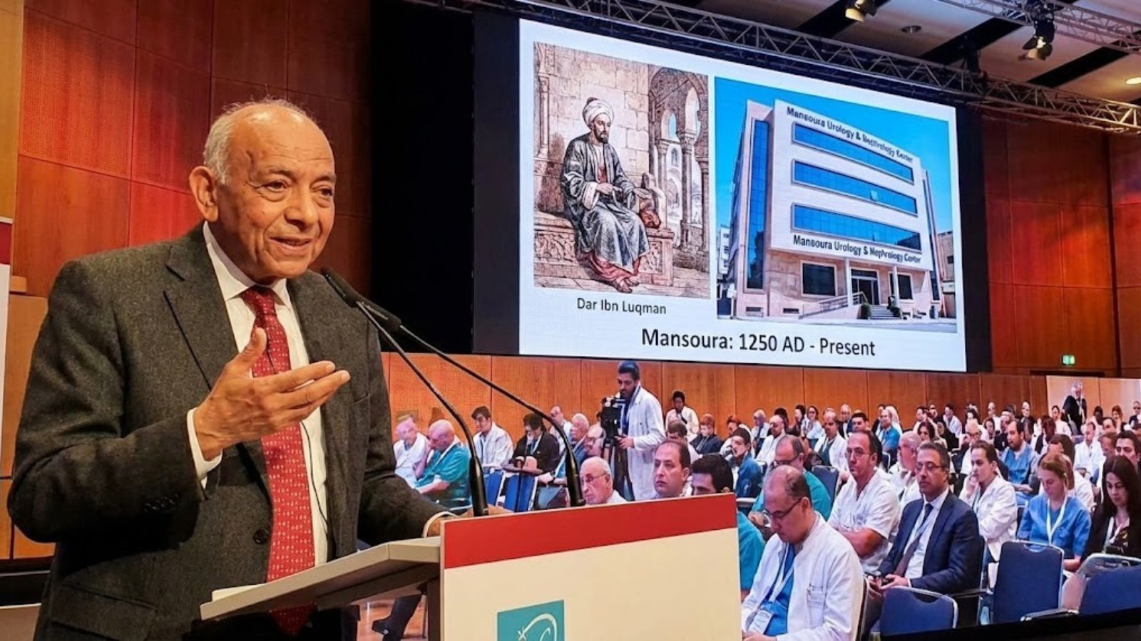 أثار حديث للدكتور محمد غنيم، خلال مشاركته في مؤتمر طبي دولي بألمانيا، تفاعلًا واسعًا على منصات التواصل الاجتماعي، بعد أن استهل كلمته بالإشارة إلى مدينته المنصورة، مستحضرًا محطة تاريخية تعود إلى نحو 800 عام.
