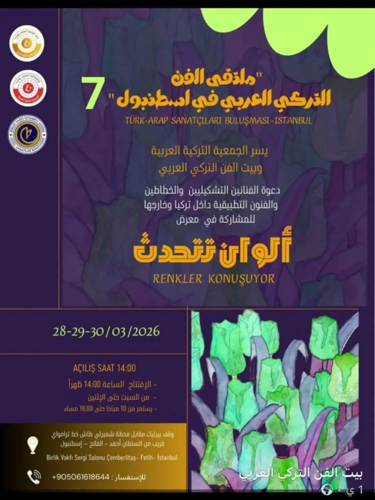 تستعد مدينة إسطنبول لاحتضان فعاليات ملتقى الفن التركي العربي الدولي في نسخته السابعة، والذي يُقام تحت عنوان “ألوان تتحدث”، بمشاركة واسعة من الفنانين التشكيليين والخطاطين والفنون التطبيقية من داخل تركيا وخارجها. ويأتي هذا الحدث الفني في إطار تعزيز التواصل الثقافي والفني بين العالمين العربي والتركي، وفتح آفاق جديدة للتعاون والإبداع المشترك.