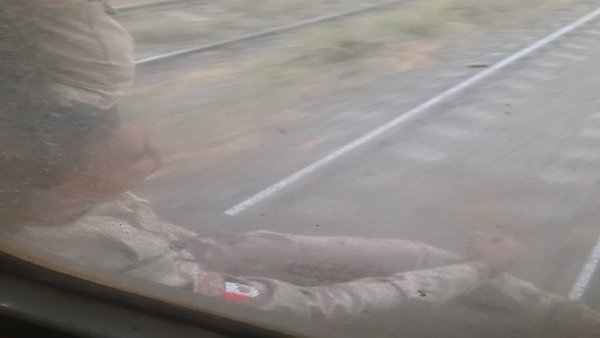 في مشهد يحبس الأنفاس، رصدت الصور مجندا بالزي العسكري وهو يتشبث بآخر عربة في القطار 992، جالسا في وضعية شديدة الخطورة تجعله عرضة للسقوط تحت العجلات في أي لحظة.