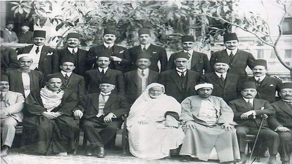 سعد باشا زغلول زعيم حزب الوفد يتوسط أعضاء الحزب ومن بينهم مصطفى النحاس باشا ومكرم عبيد باشا ..