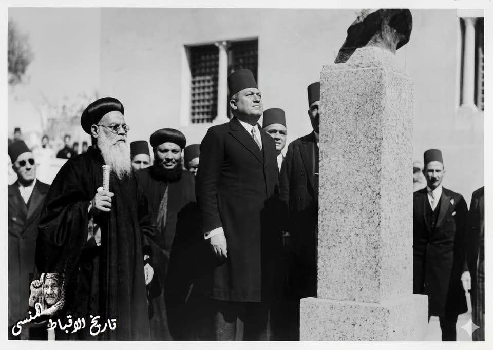 صورة نادرة من عام 1947 تكشف لحظة تاريخية أمام تمثال مرقس باشا سميكة مؤسس المتحف القبطي
