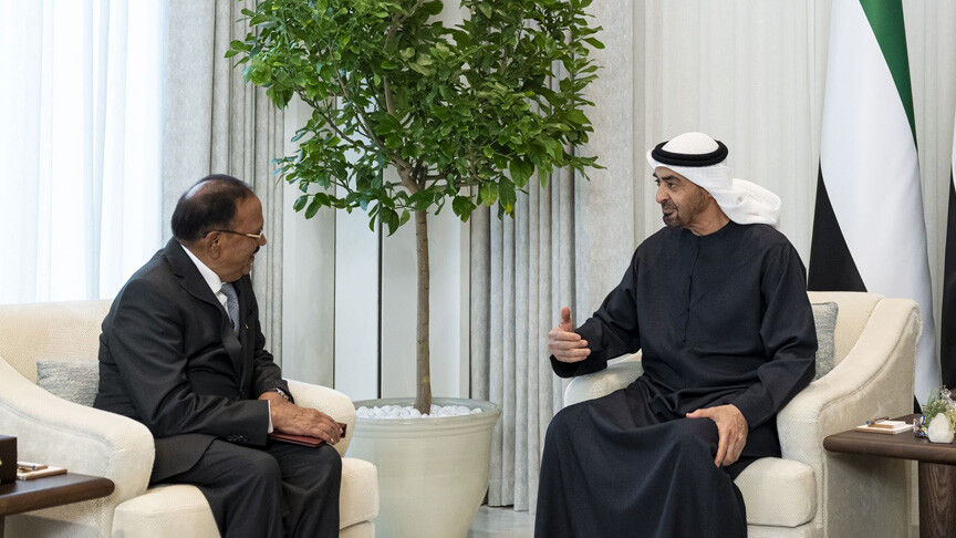 محمد بن زايد يبحث مع مستشار الأمن الوطني الهندي تطورات الشرق الأوسط وأمن الطاقة العالمي