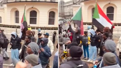 مئات السودانيين يتظاهرون أمام السفارة الإماراتية في لندن احتجاجًا على دعم “الدعم السريع”