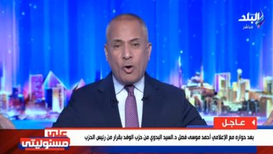 شن الإعلامي أحمد موسى هجومًا عنيفًا ضد قرار رئيس حزب الوفد الدكتور عبدالسند يمامة بفصل الدكتور السيد البدوي رئيس الحزب الأسبق من صفوفه. اعتبر موسى…