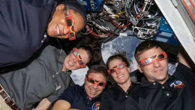رواد الفضاد يرتدون النظارات الواقية أثناء ظاهرة كسوف الشمس